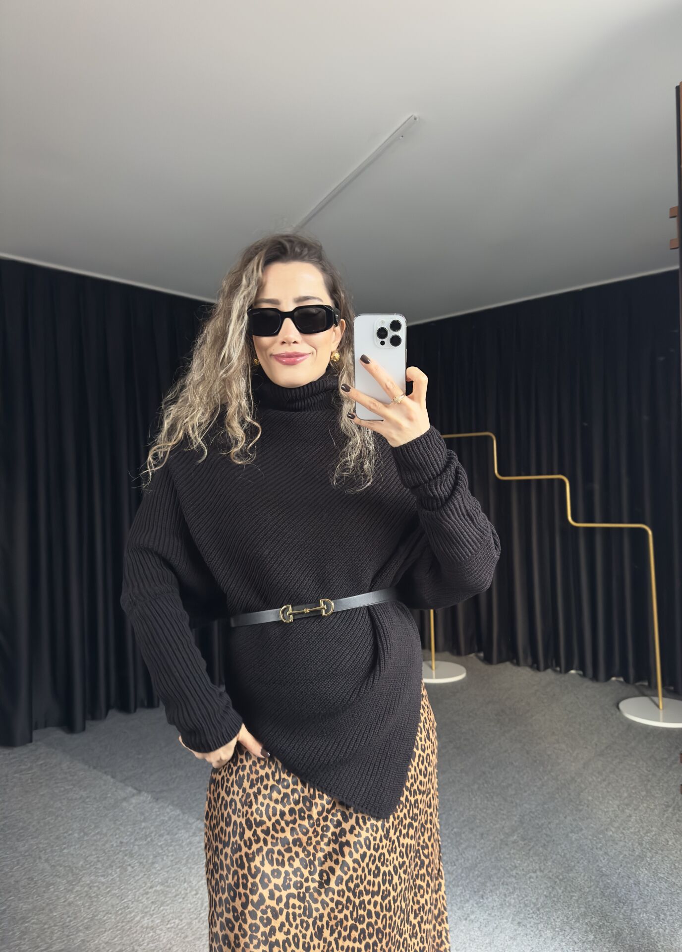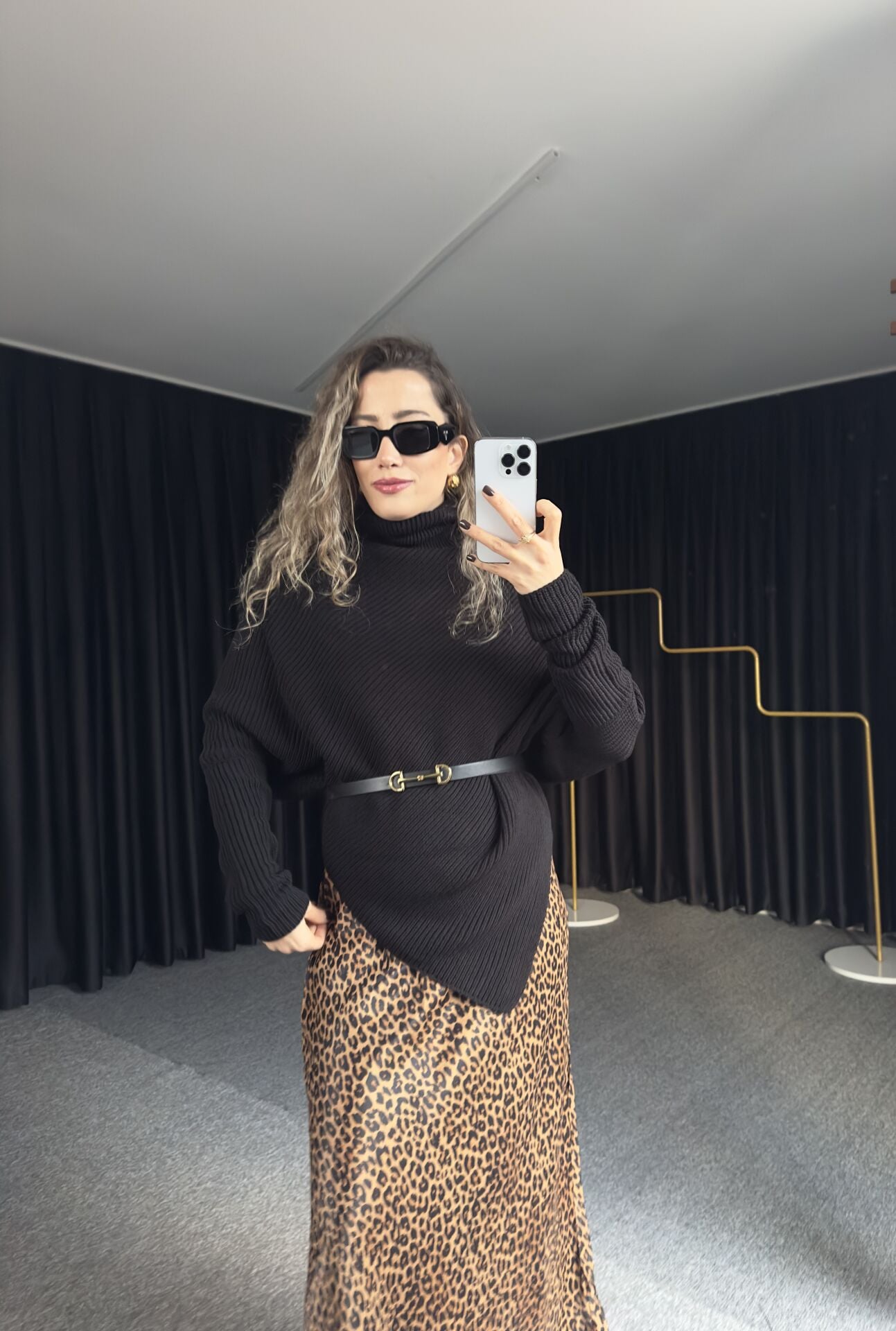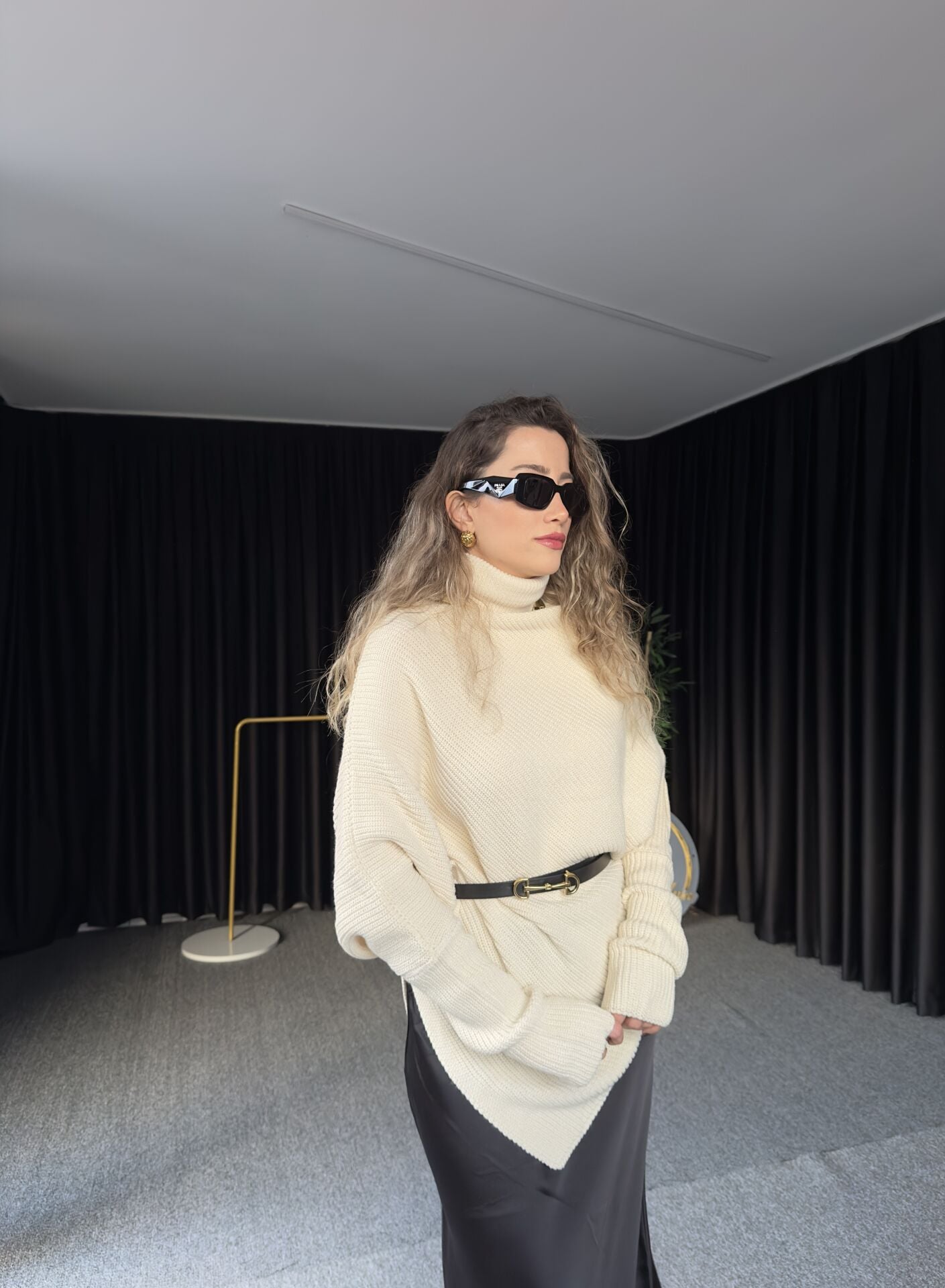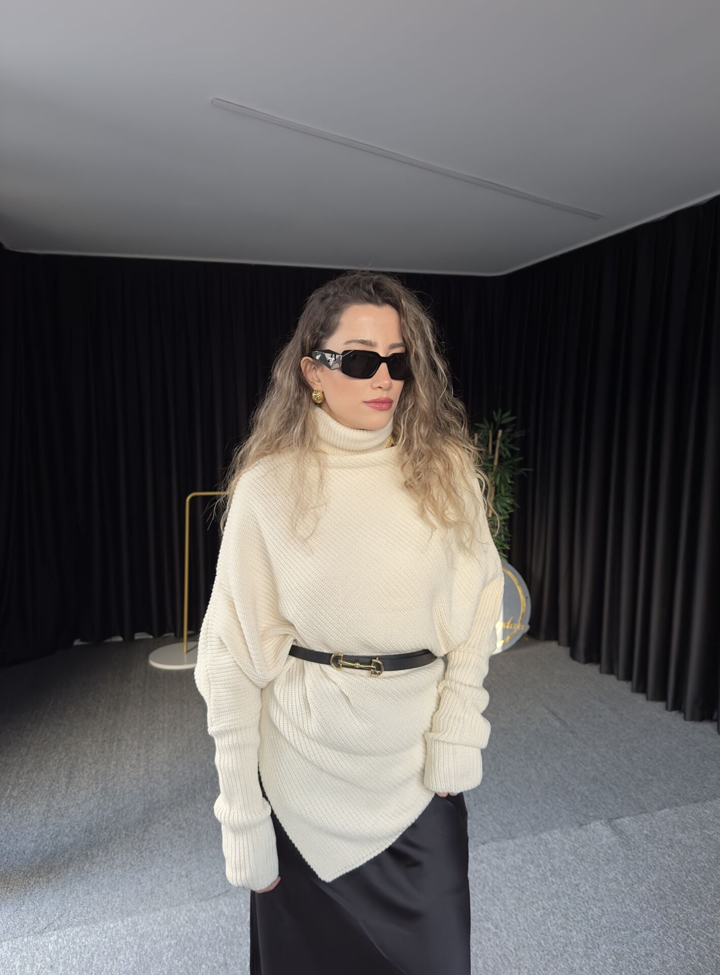 Standart beden önü arkası asimetrik model boğazlı kazak
