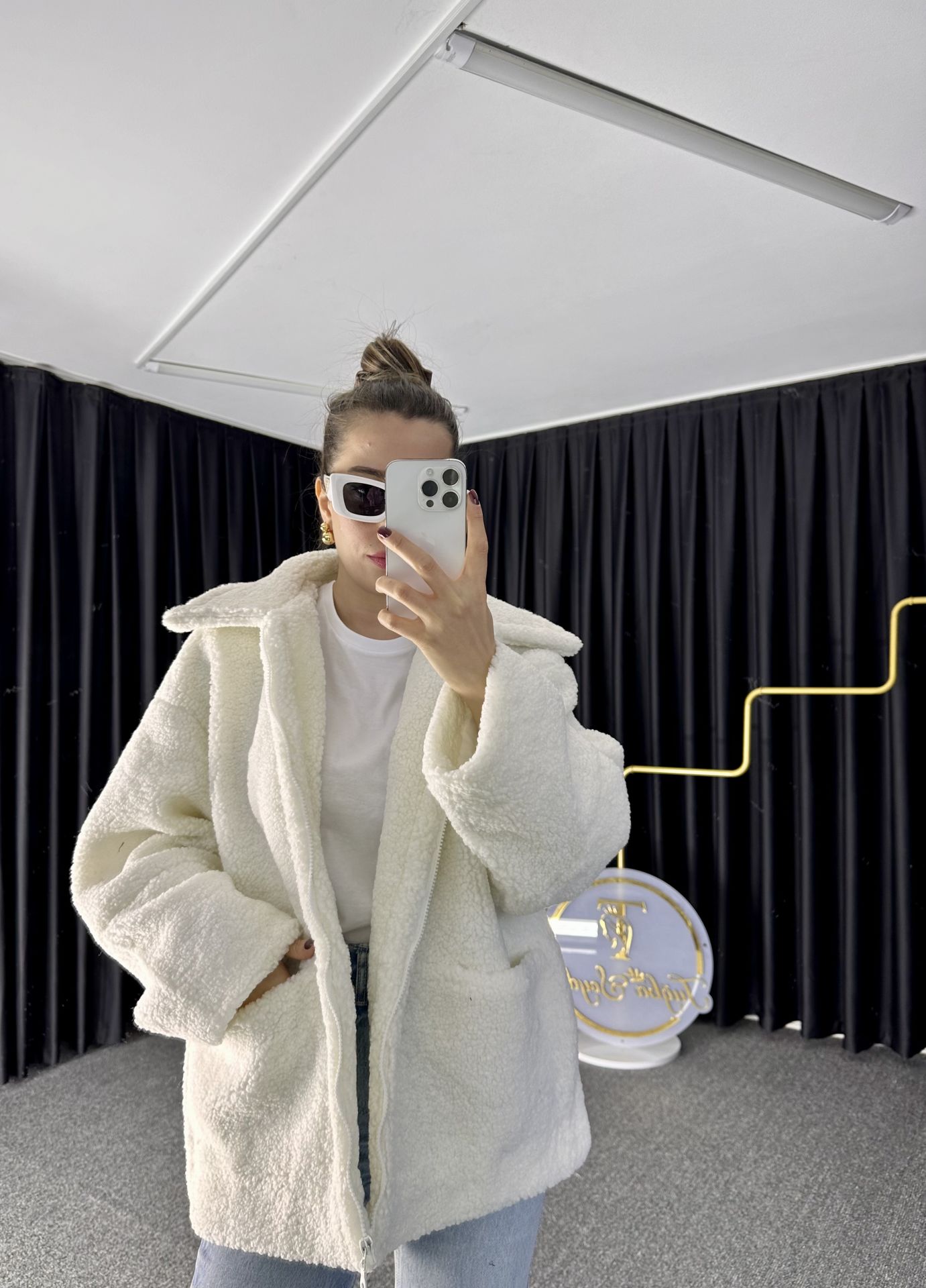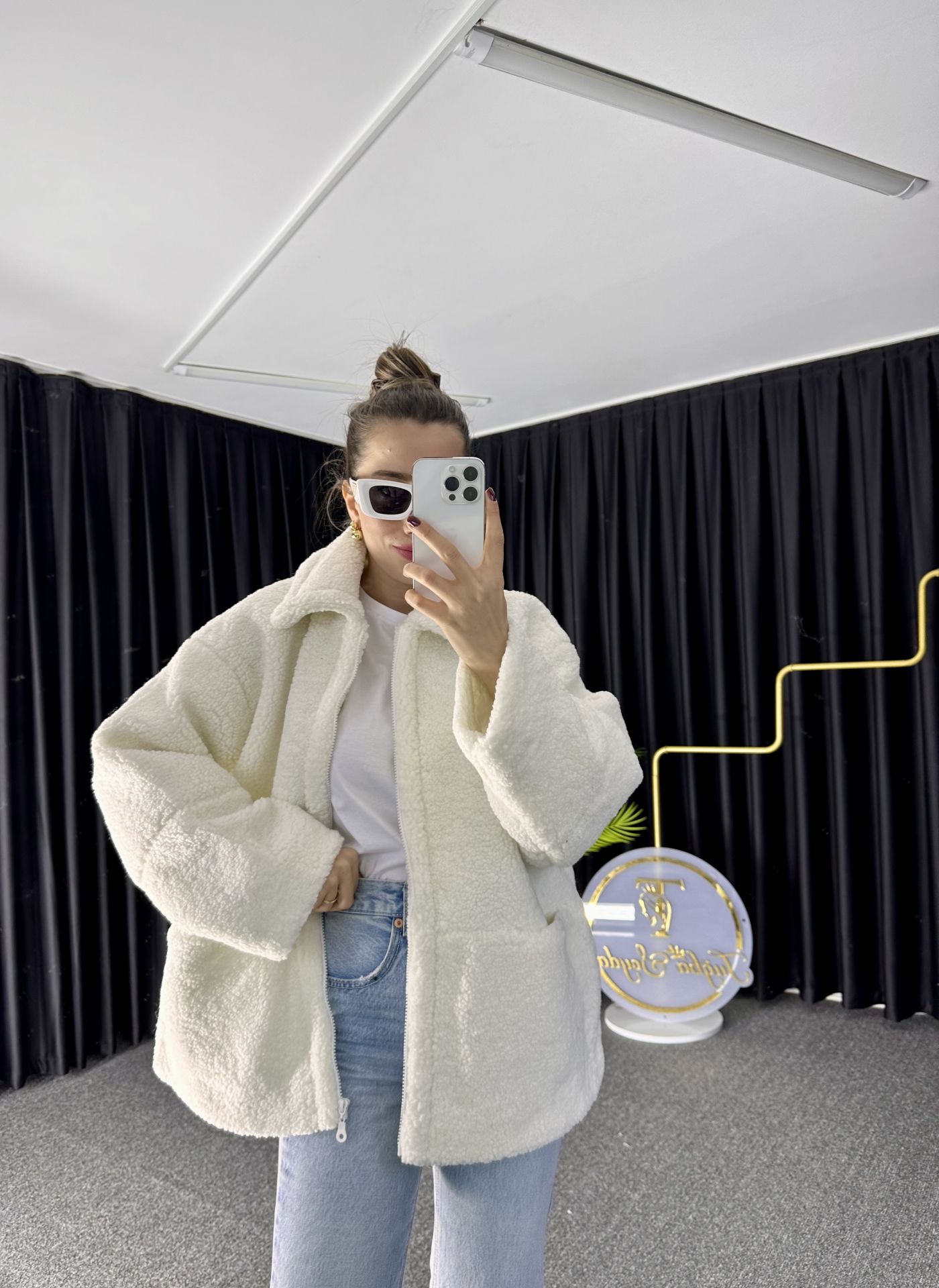 Beyaz Peluş Mont