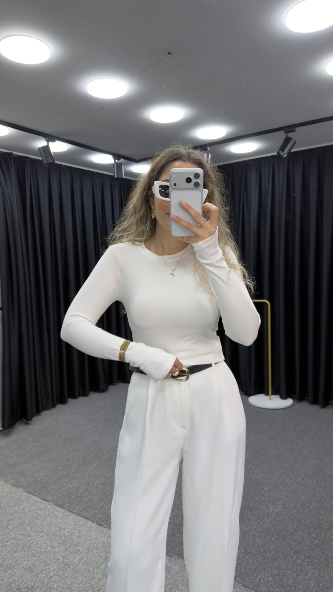 Bisiklet Yaka Parmak Geçmeli Esnek Body