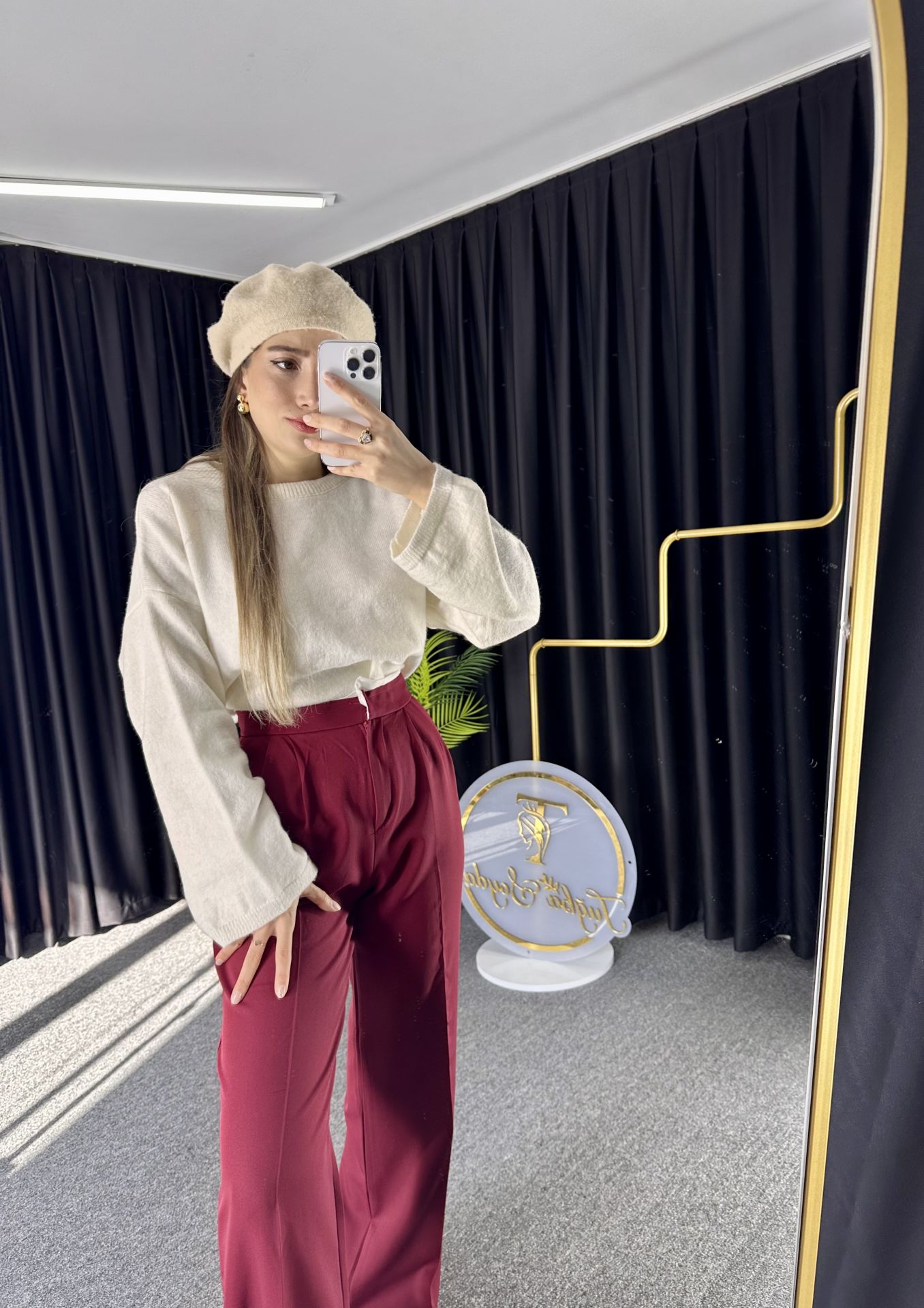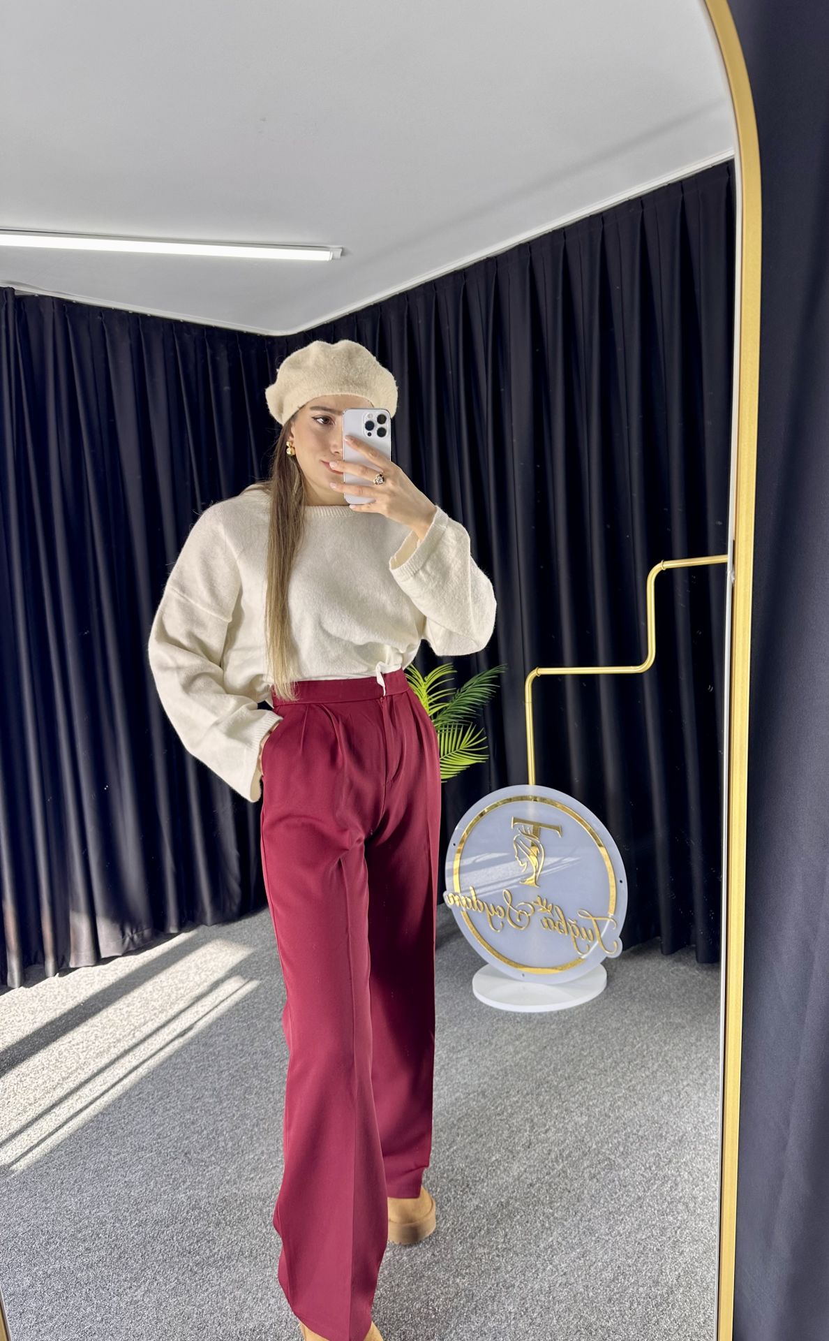 Bordo Bel Detaylı Palazzo