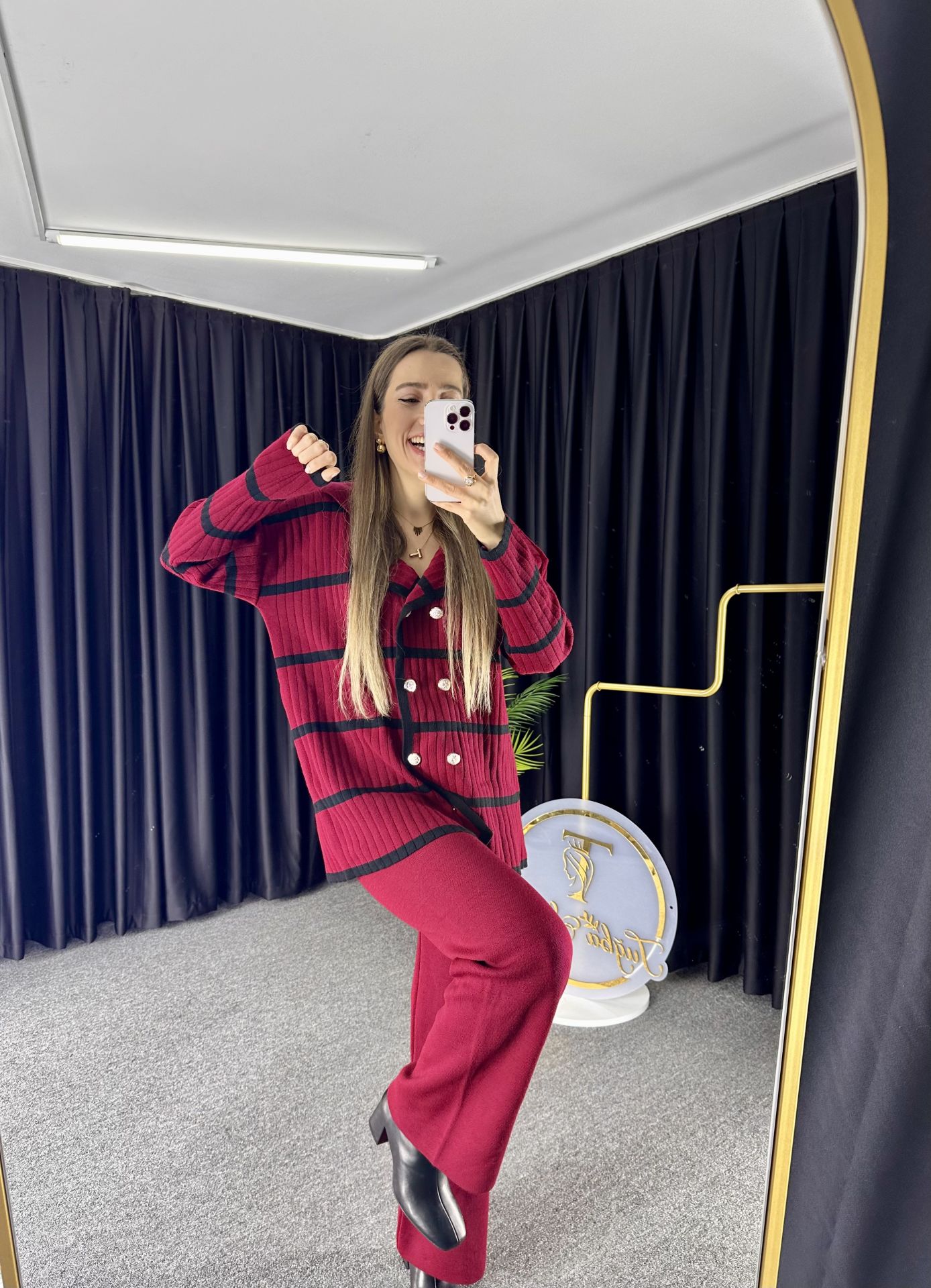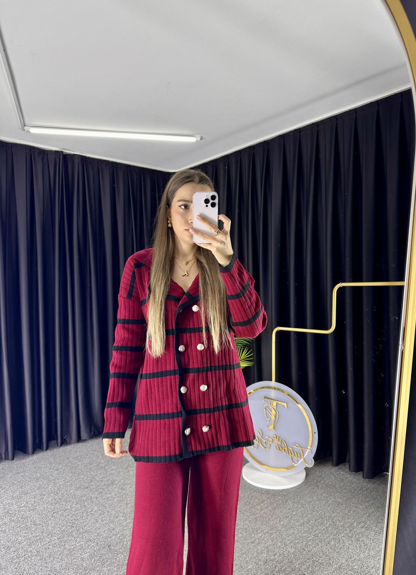 Bordo Triko Pantolon Hırka Takım