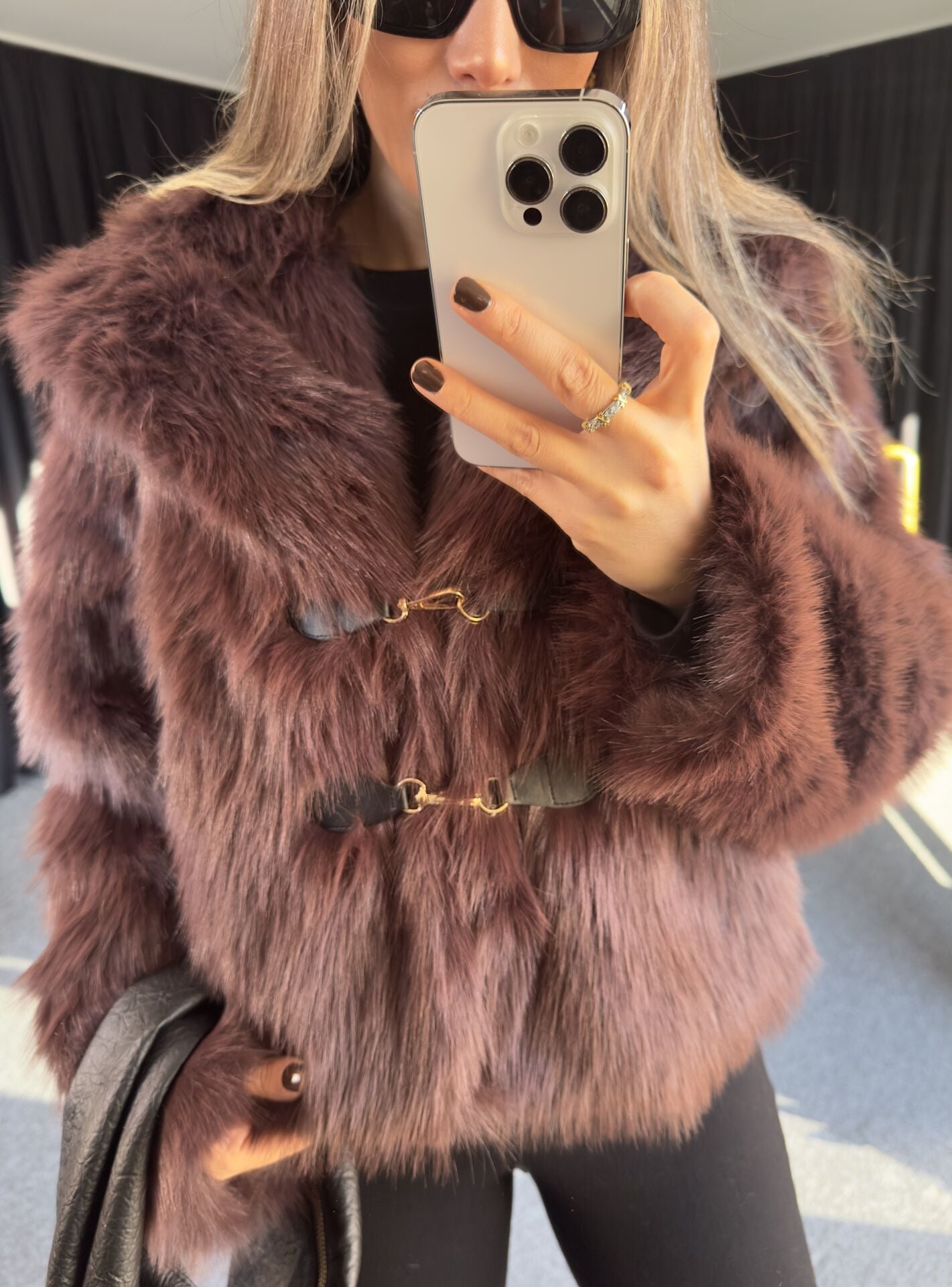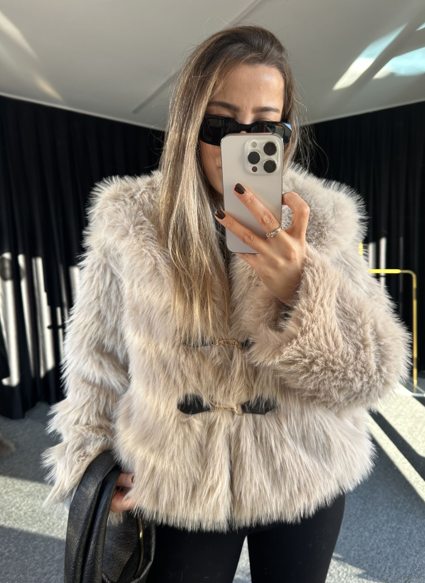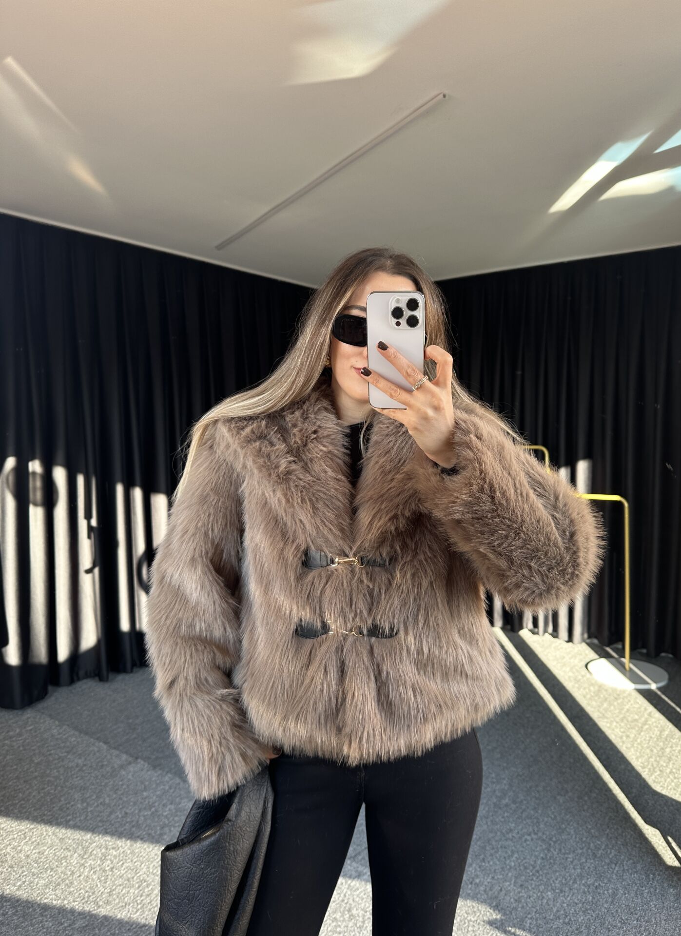 DERİ AKSESUARLI KÜRK CEKET
