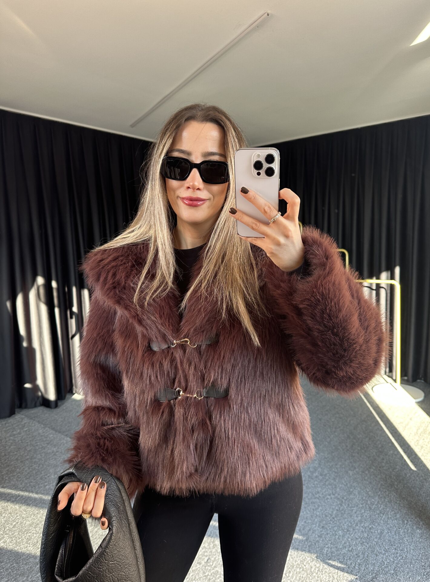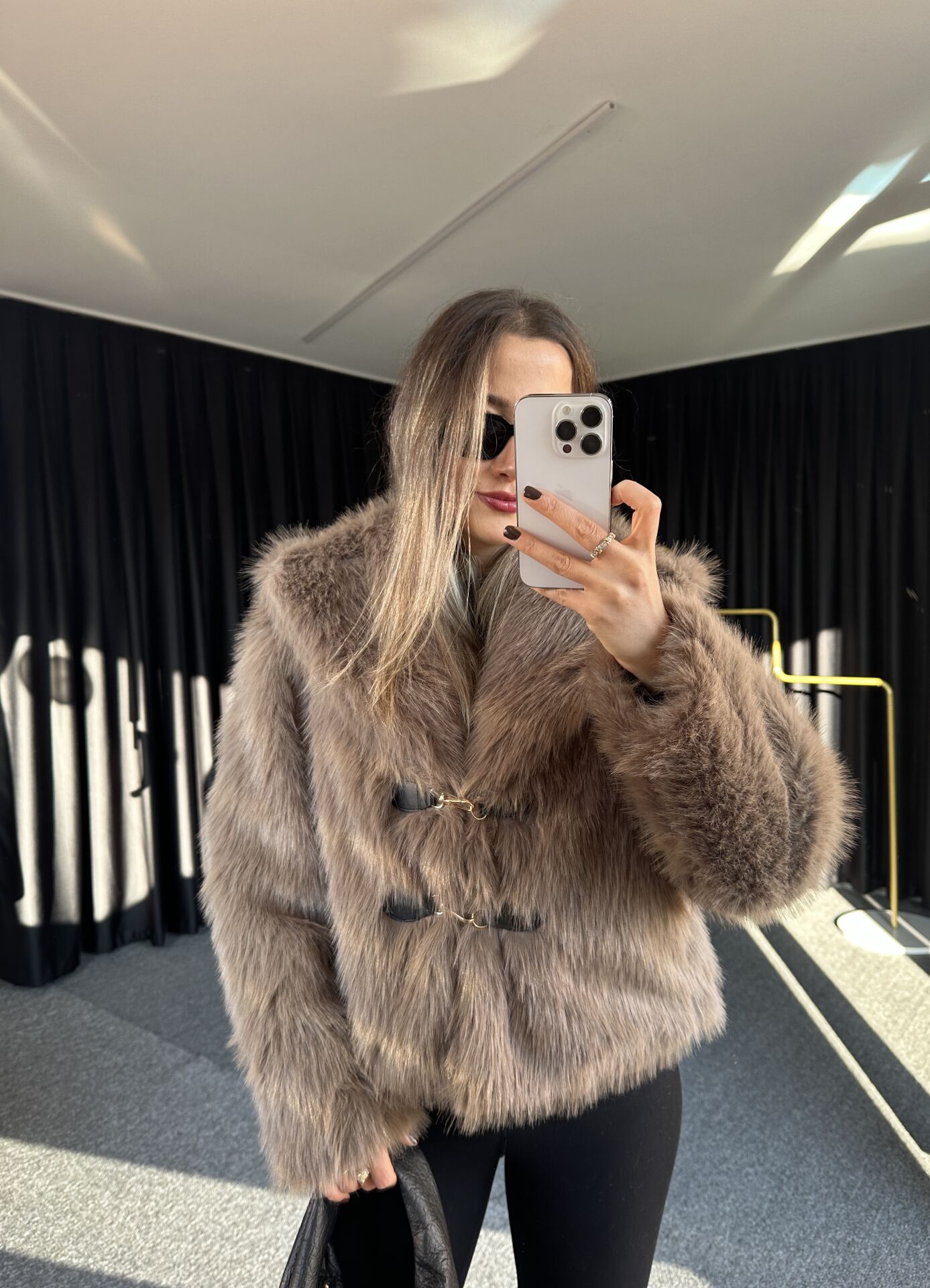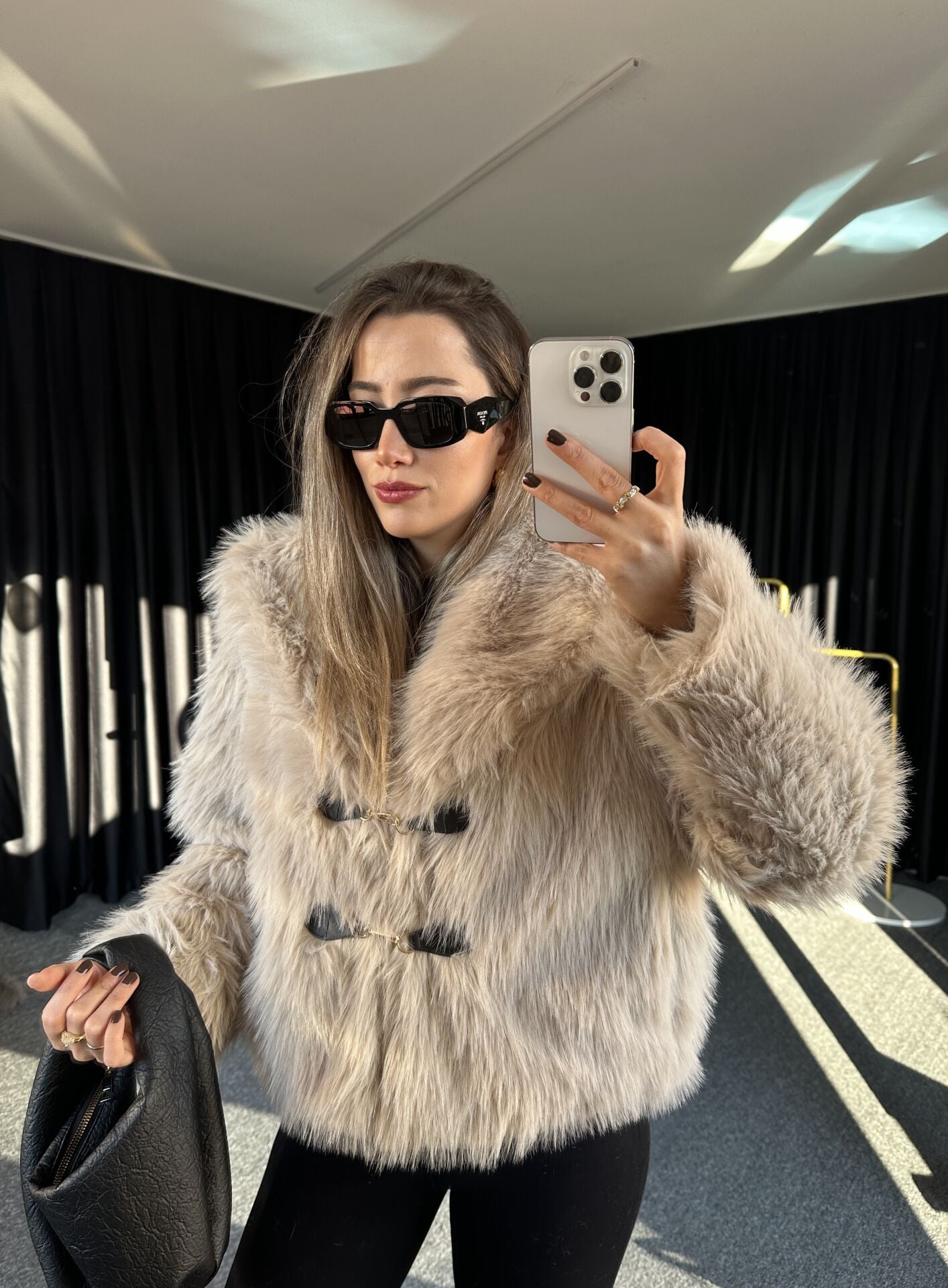 DERİ AKSESUARLI KÜRK CEKET