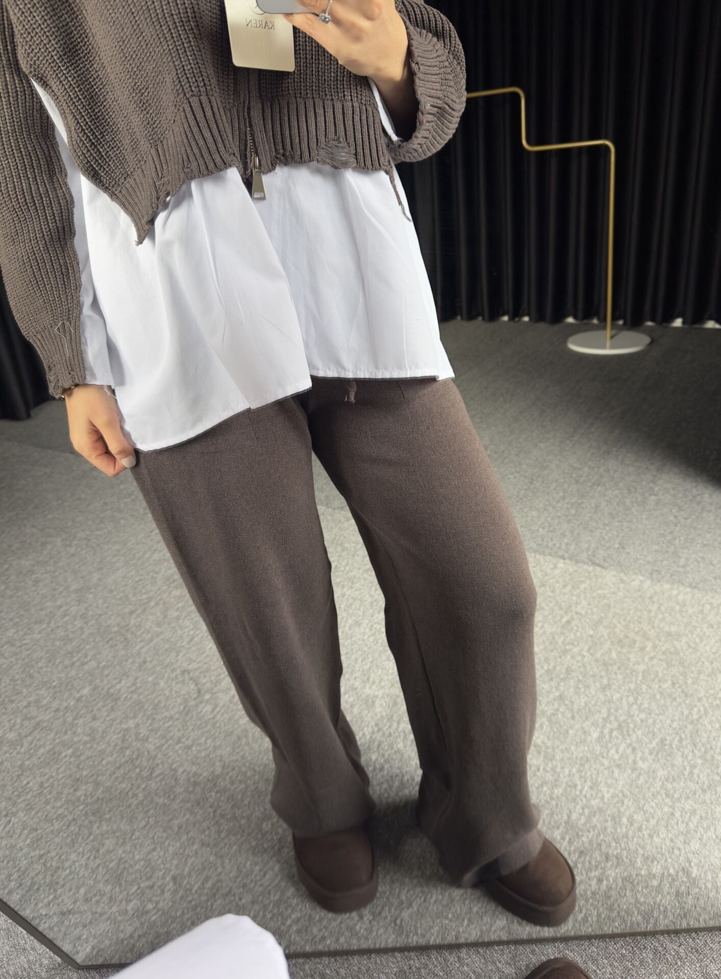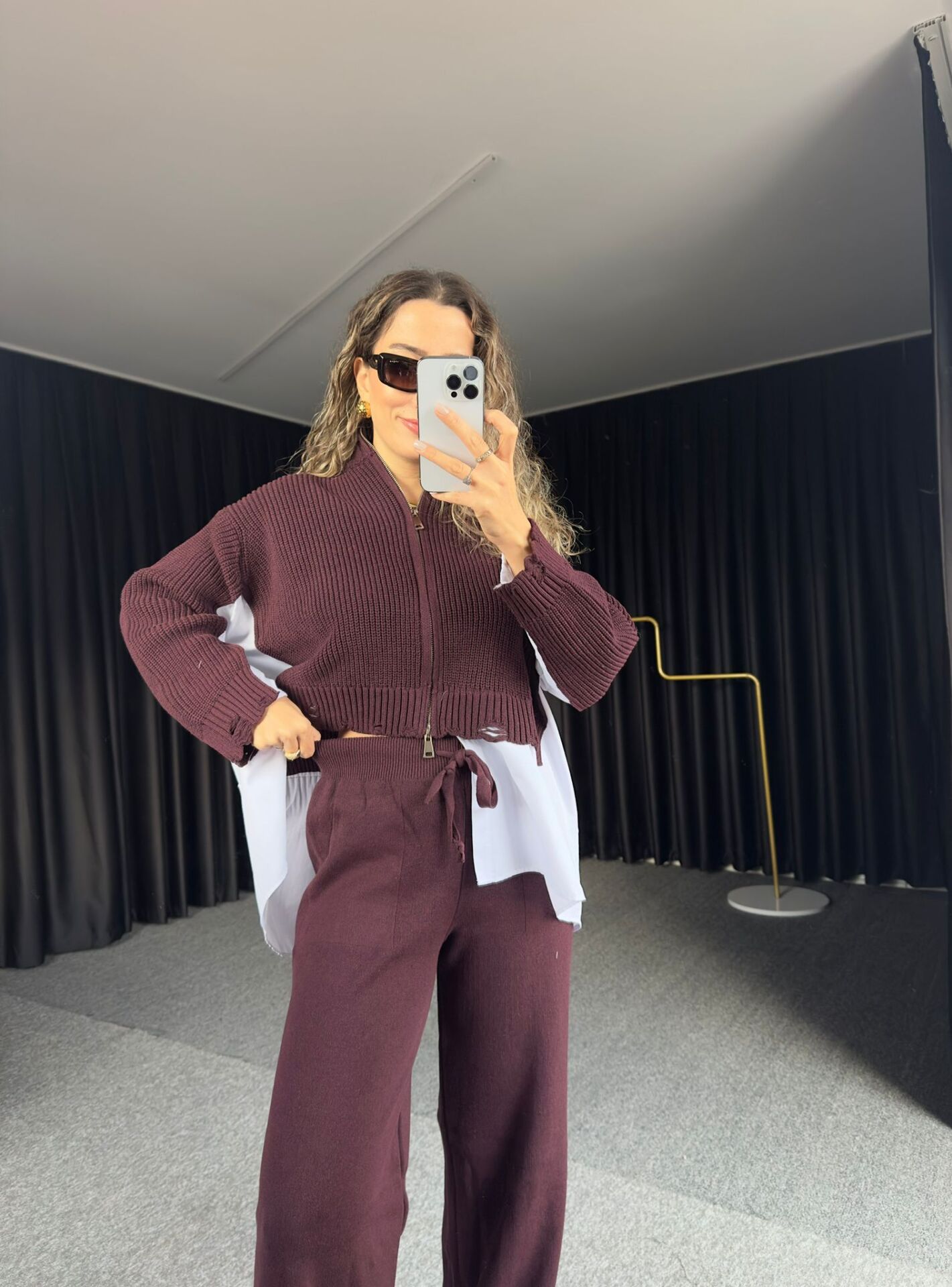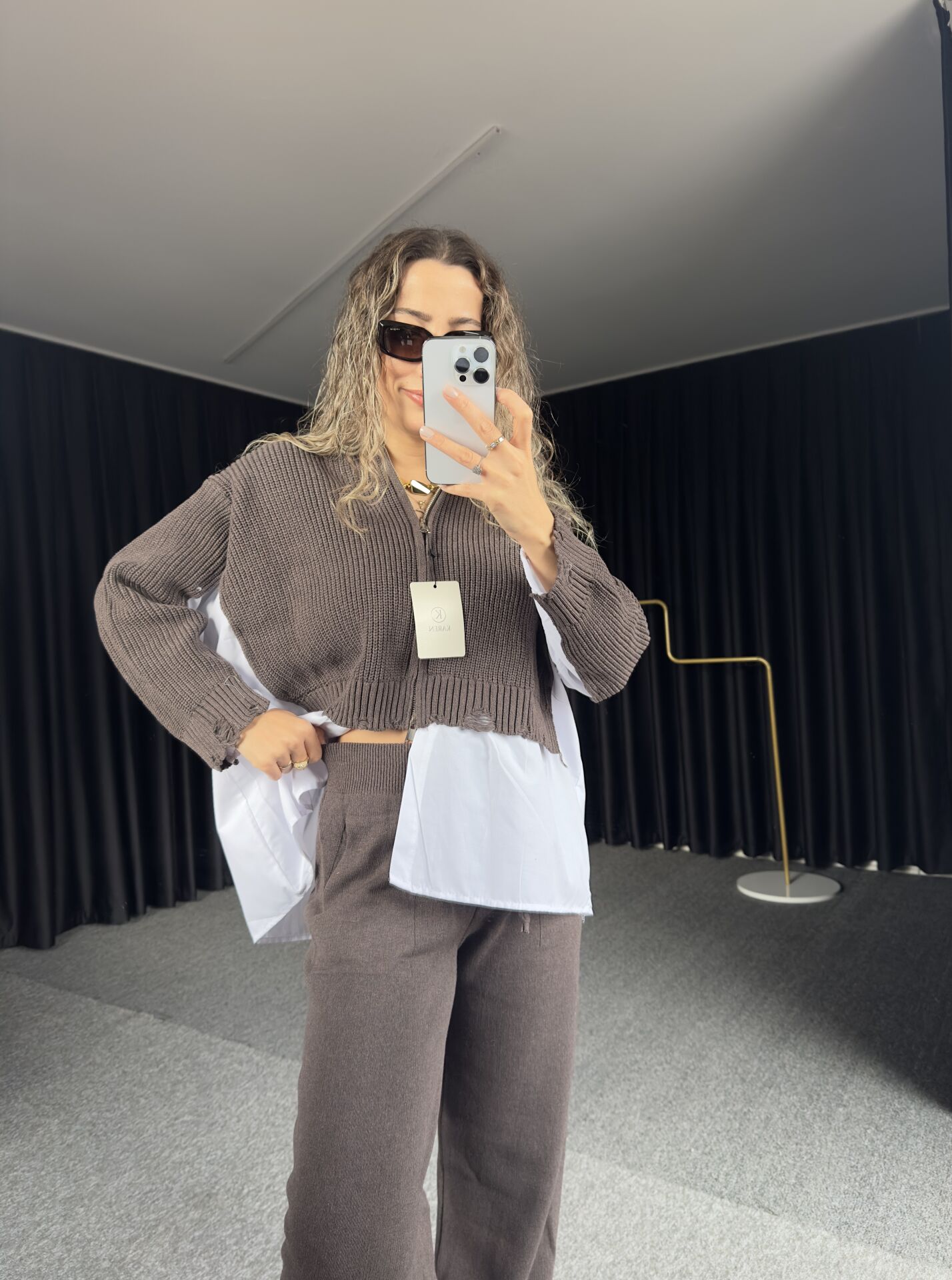 GÖMLEK DETAYLI FERMUARLI TRİKO SWEAT PANTOLON TAKIM