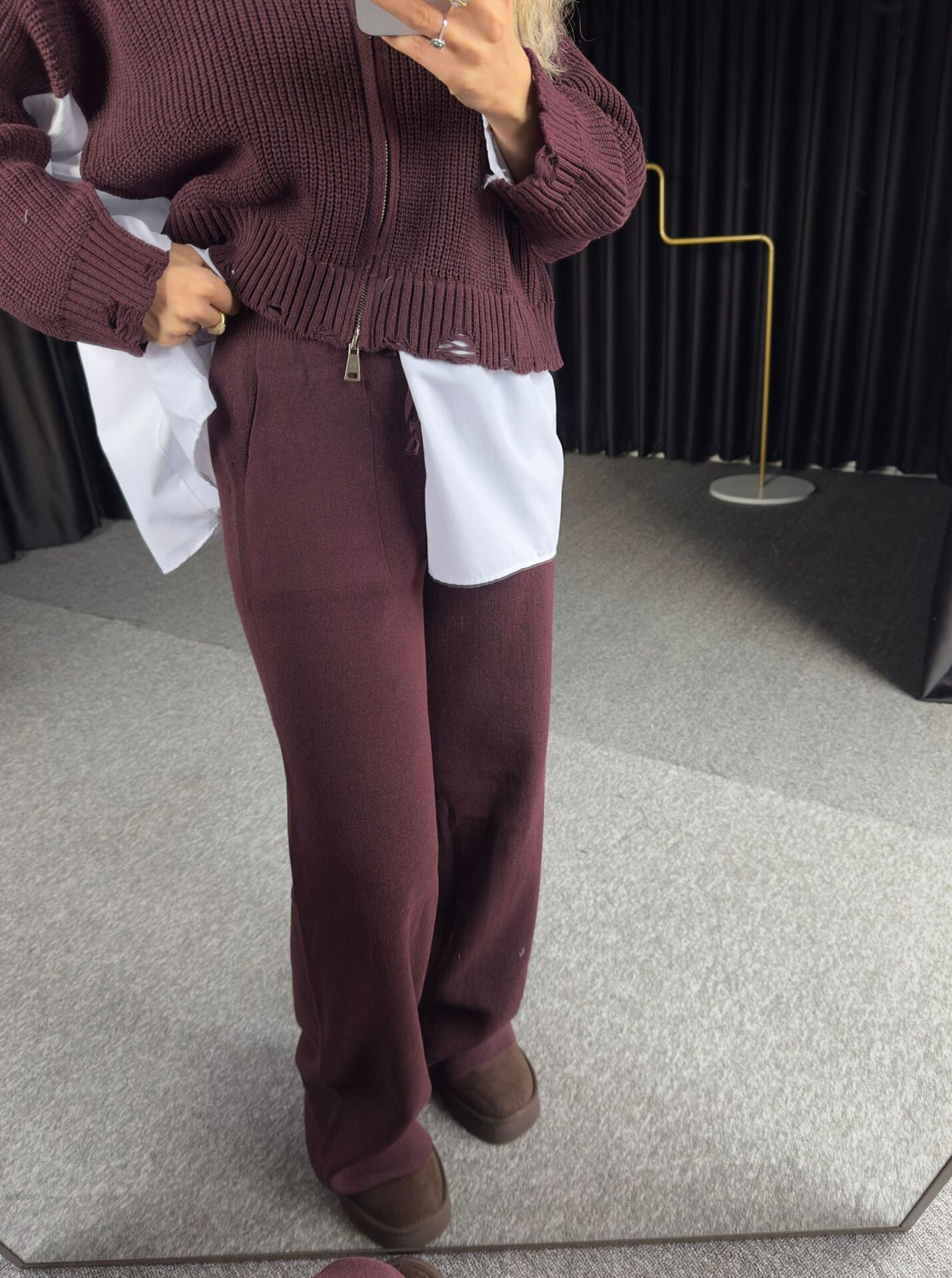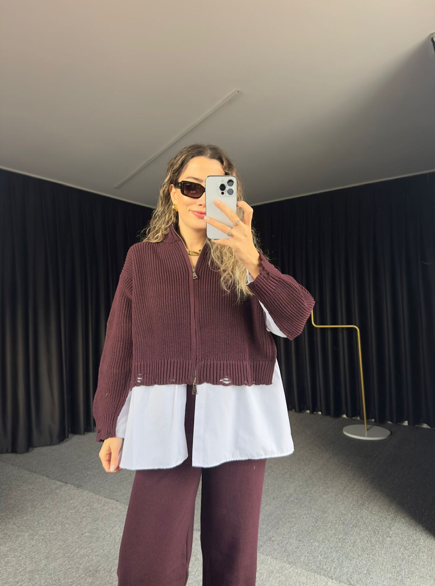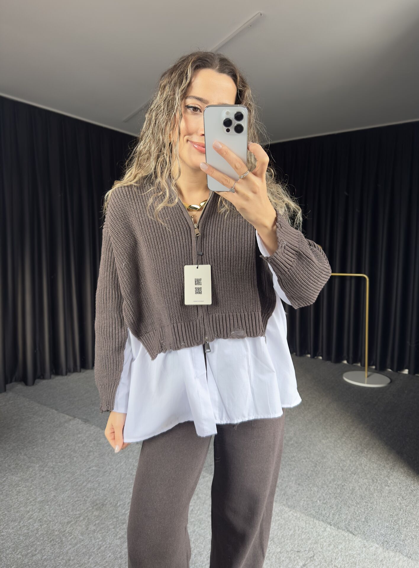 GÖMLEK DETAYLI FERMUARLI TRİKO SWEAT PANTOLON TAKIM