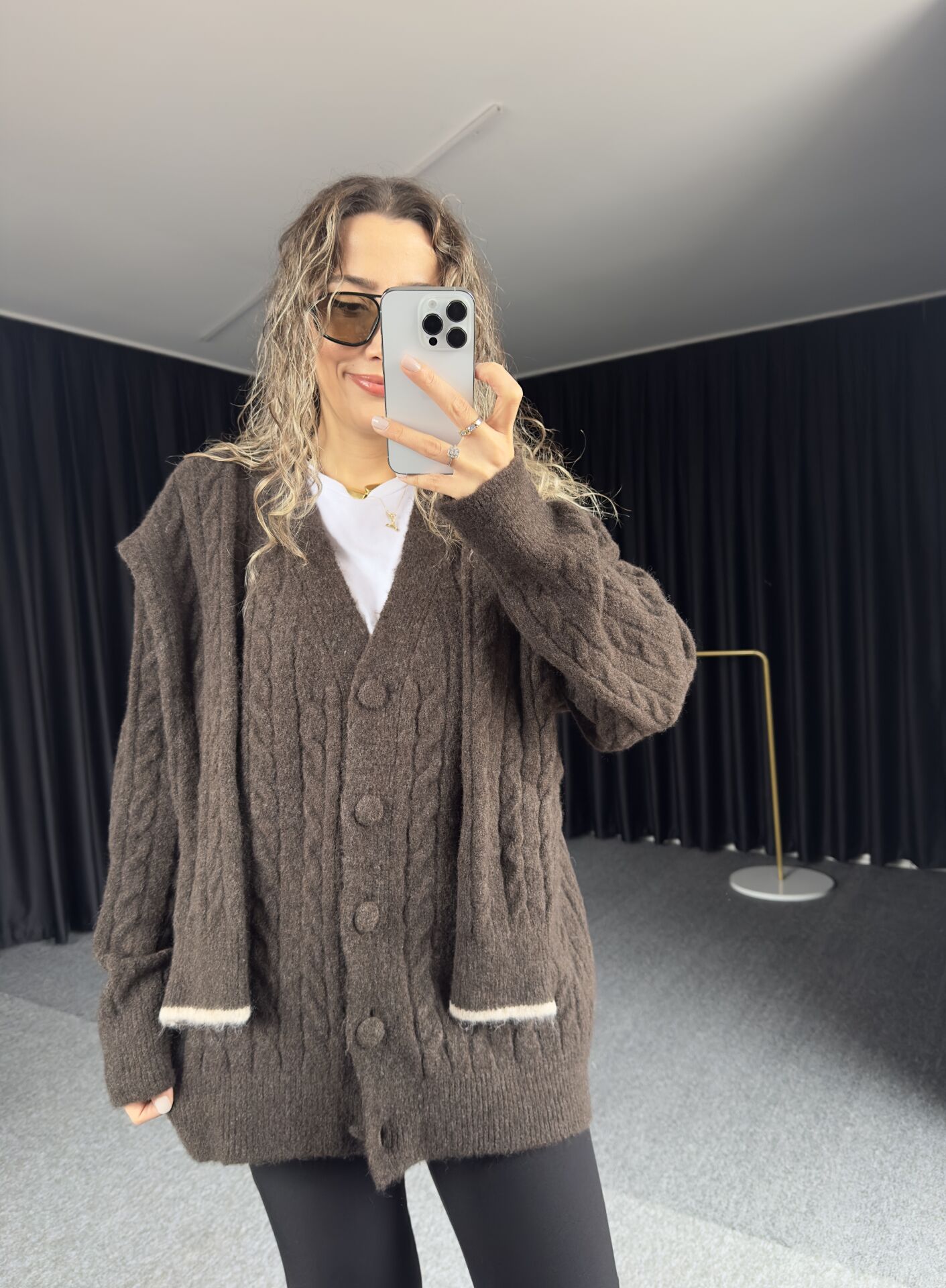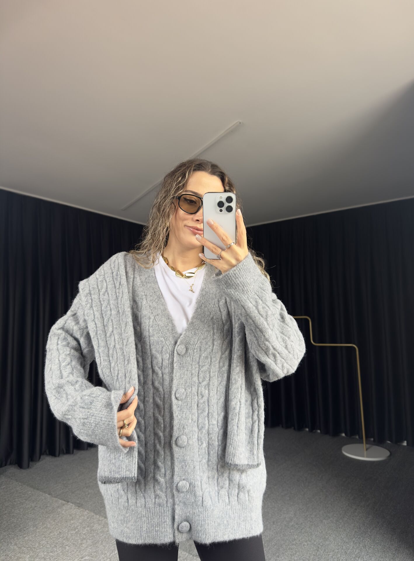 -Omuz atkı detaylı, uzun kollu düğmeli