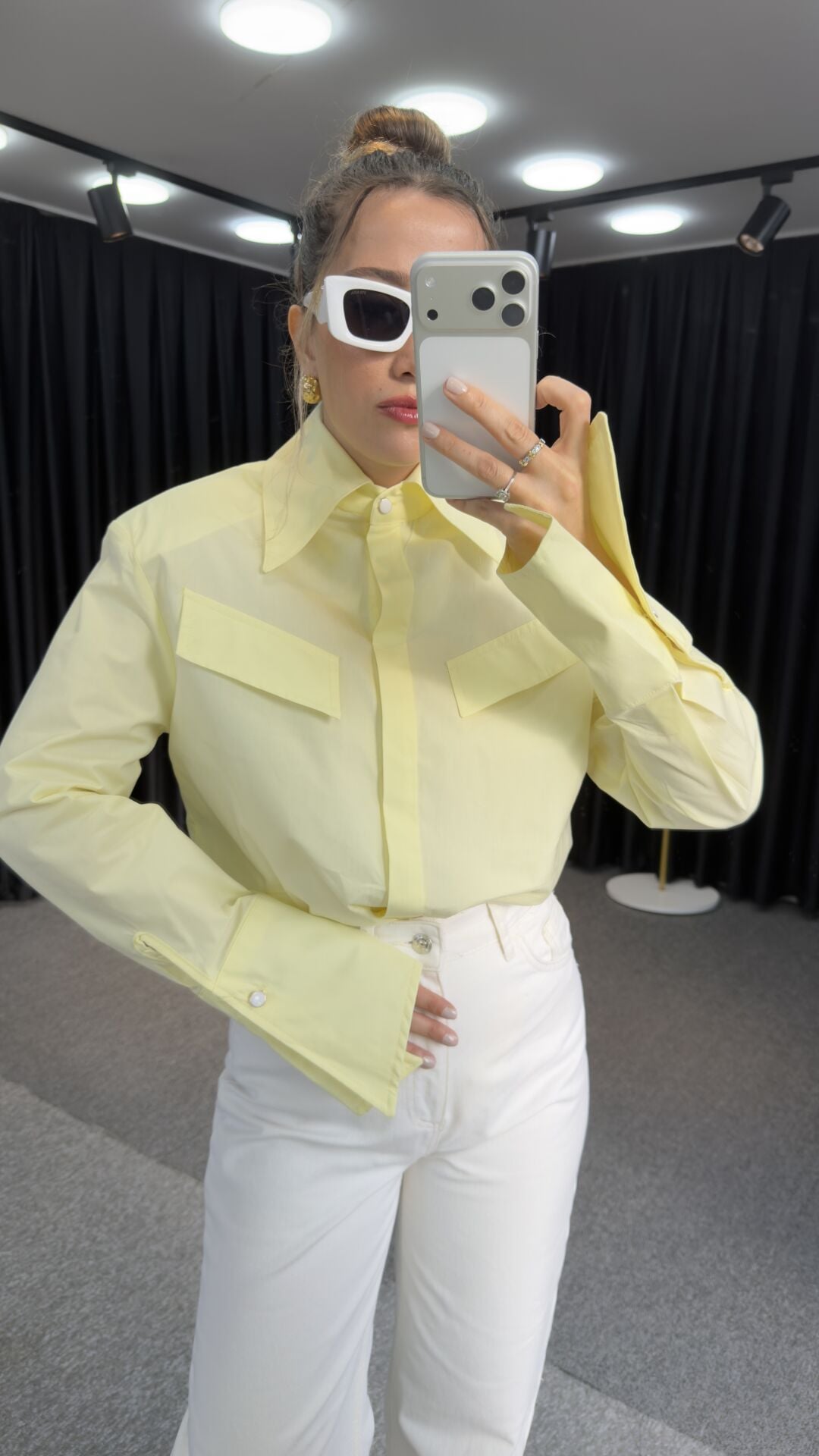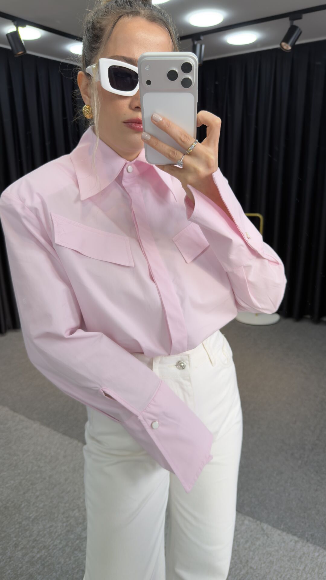 Omuzları Vatkalı Gizli Düğmeli Gömlek