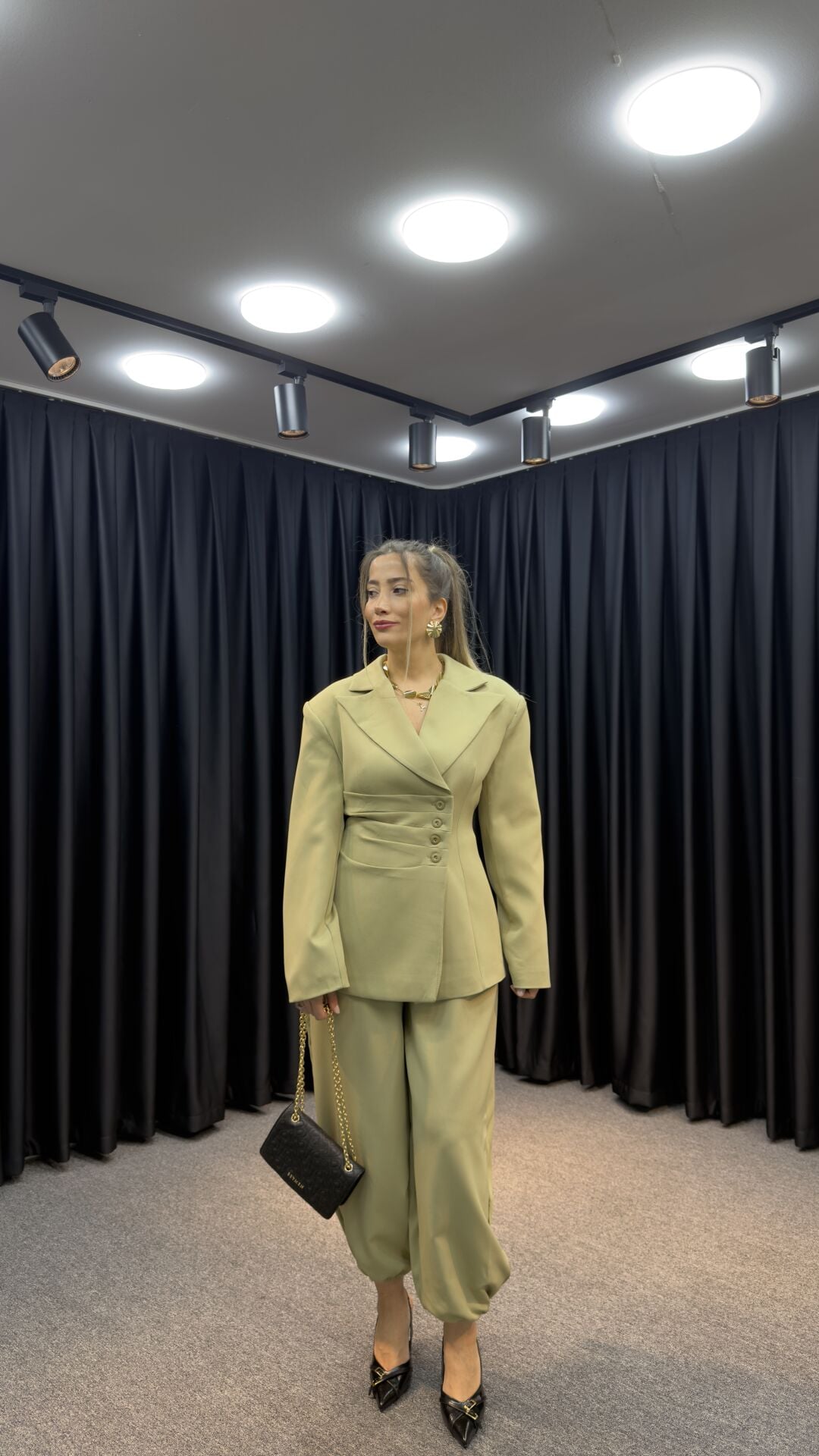 Ceket içi astarlı önü drapeli belden bağlama detaylı