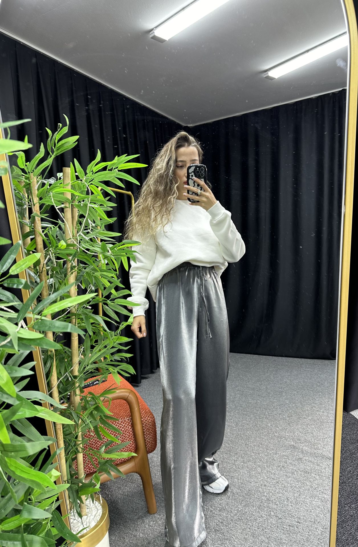 Parlak Kumaş Bel Bağcıklı Palazzo