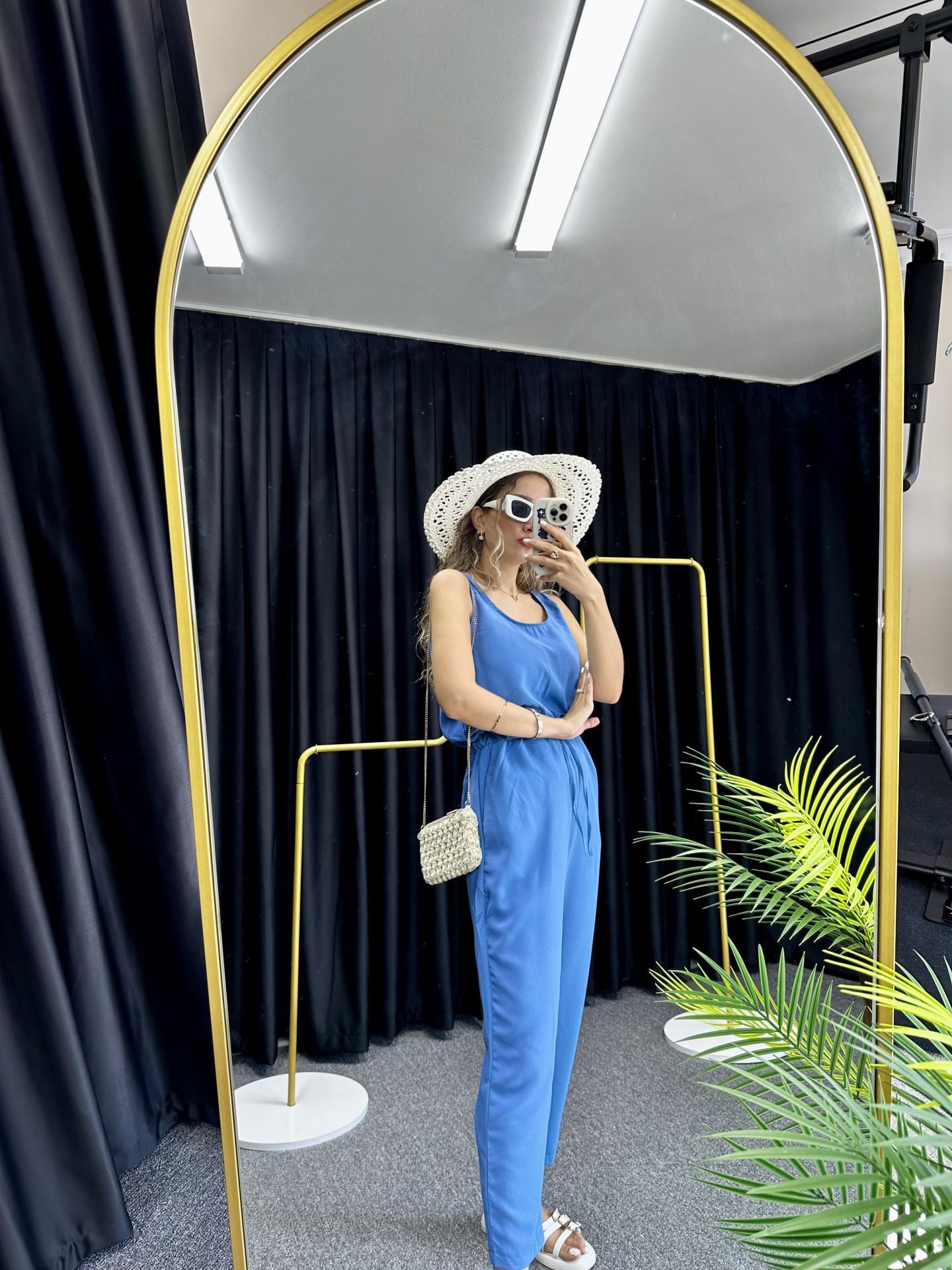 Sıfır Kol Bel Bağcıklı Mavi Tulum
