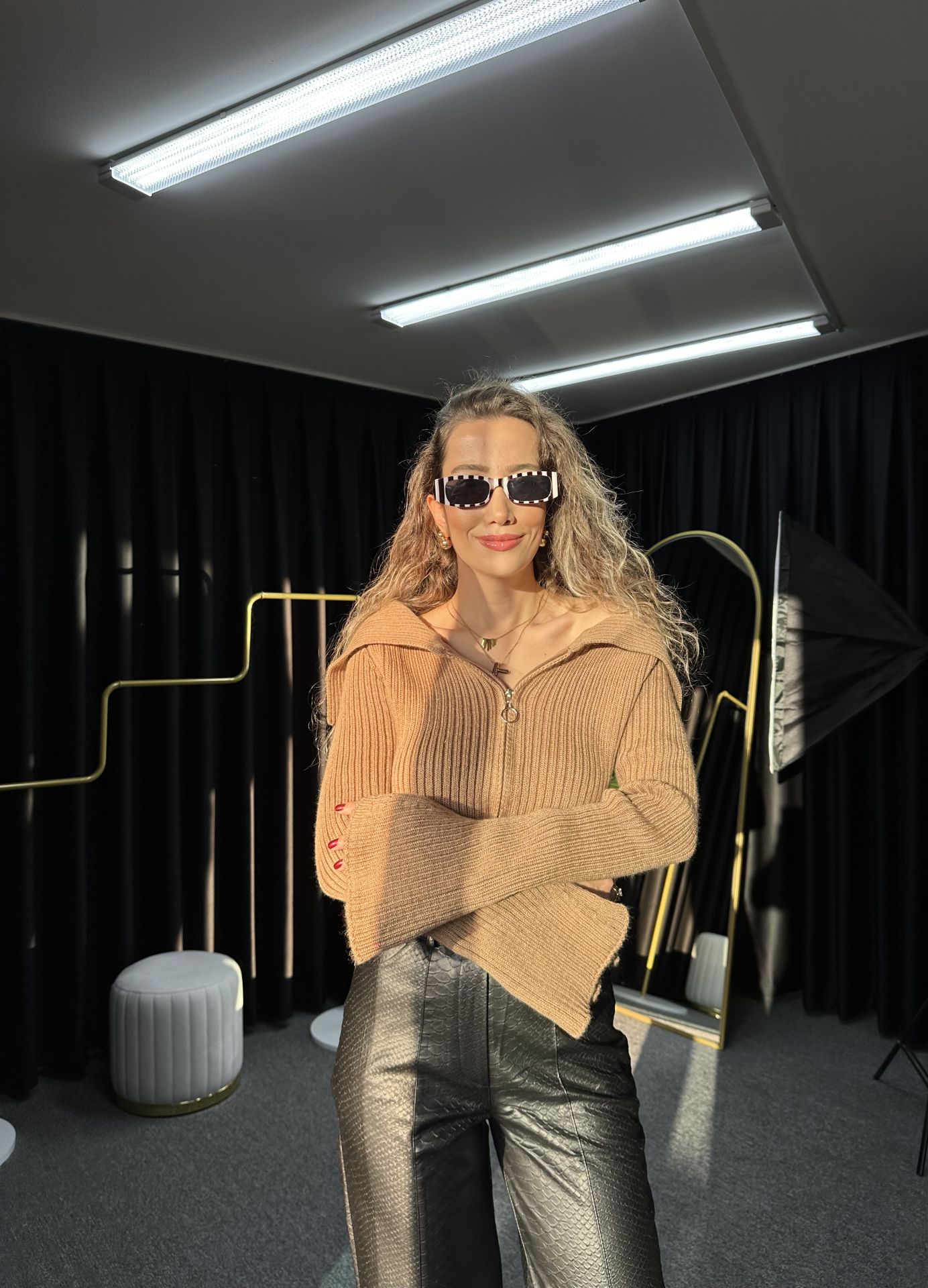 Taba Kol Detay Triko Fermuarlı Kazak