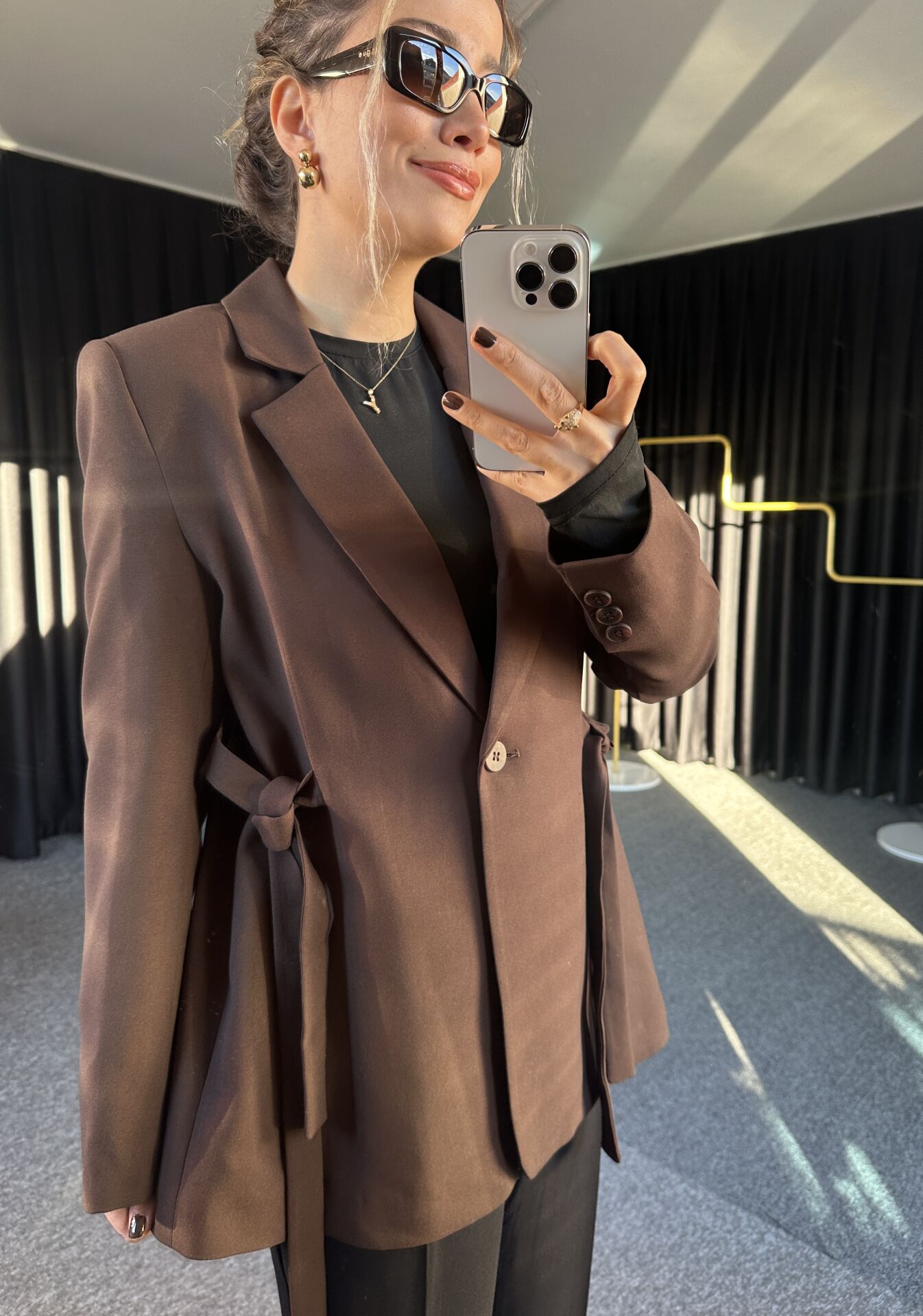 Yanları bağlama detaylı, Kruvaze Yaka Ceket